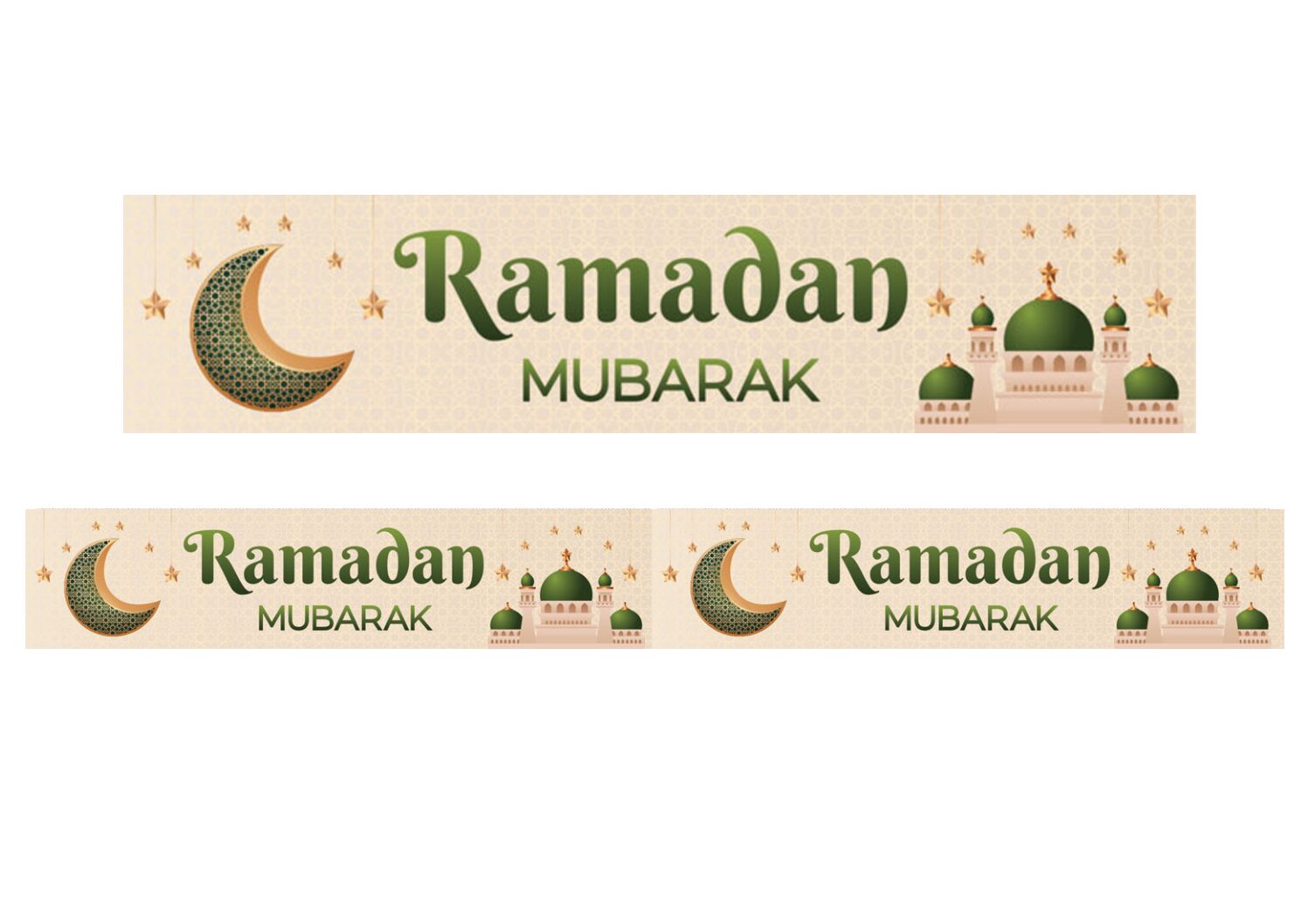 Decorate your home with these beautiful banners for Ramadan. Matches perfectly with our Ramadan Mubarak Cream and Green flags and gift boxes.